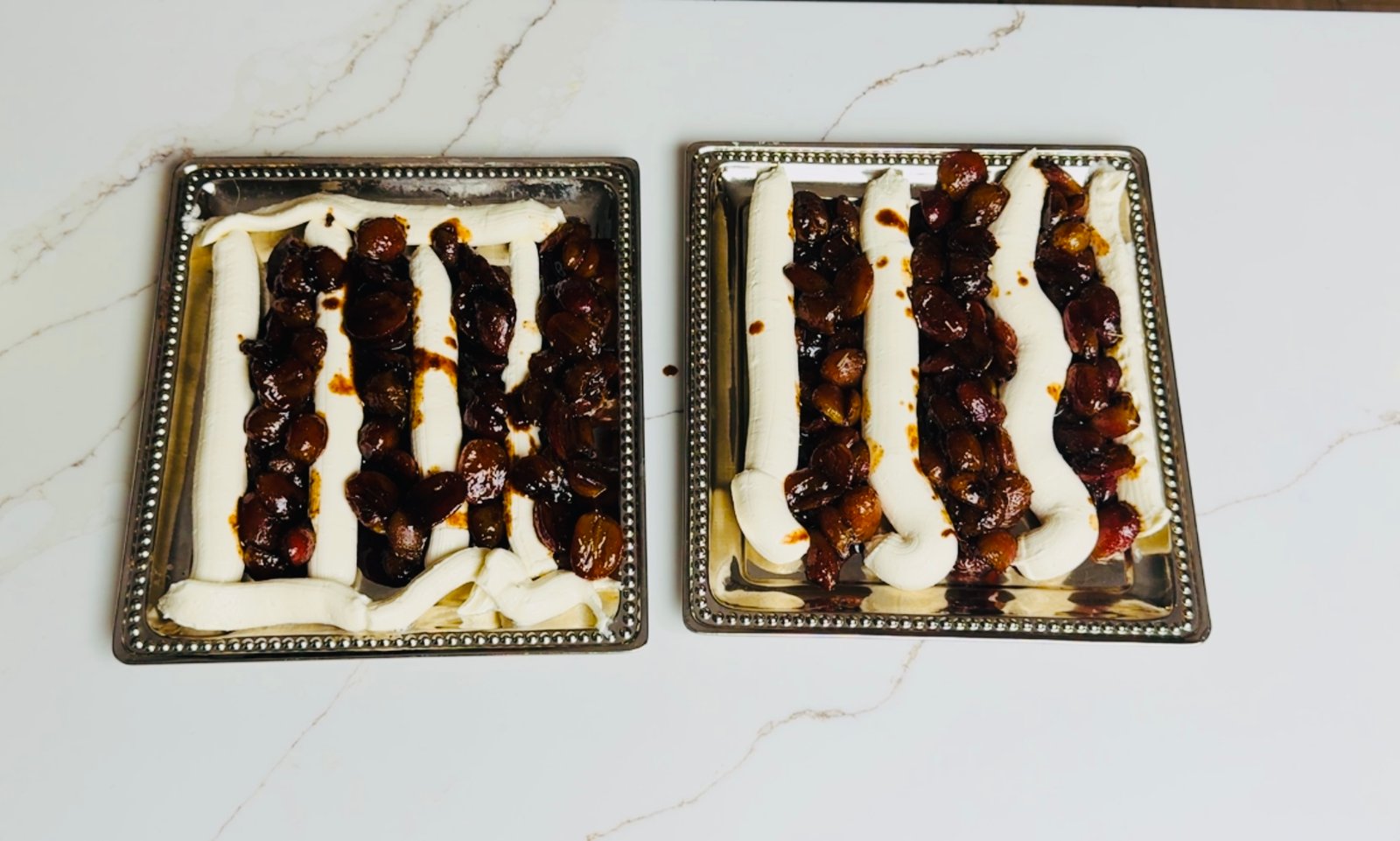 - Assemble appetizer bases (whipped brie, shrimp filling)