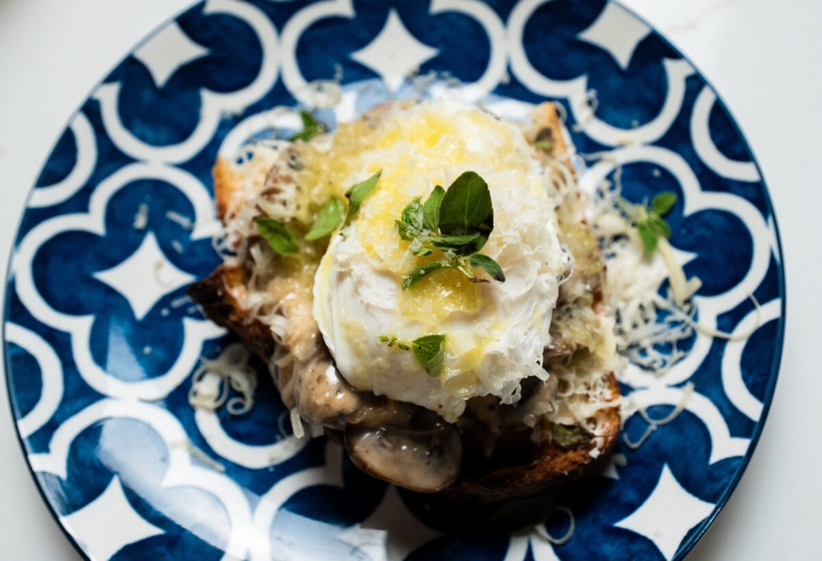 Creamy Mushroom Toast with Gruyère and Poached Eggs